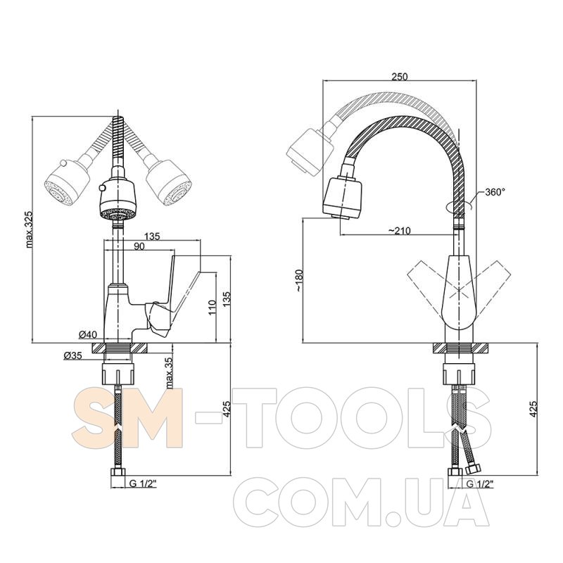 Смеситель для кухни с рефлекторным изливом Lidz (CRM)-20 38 014 04