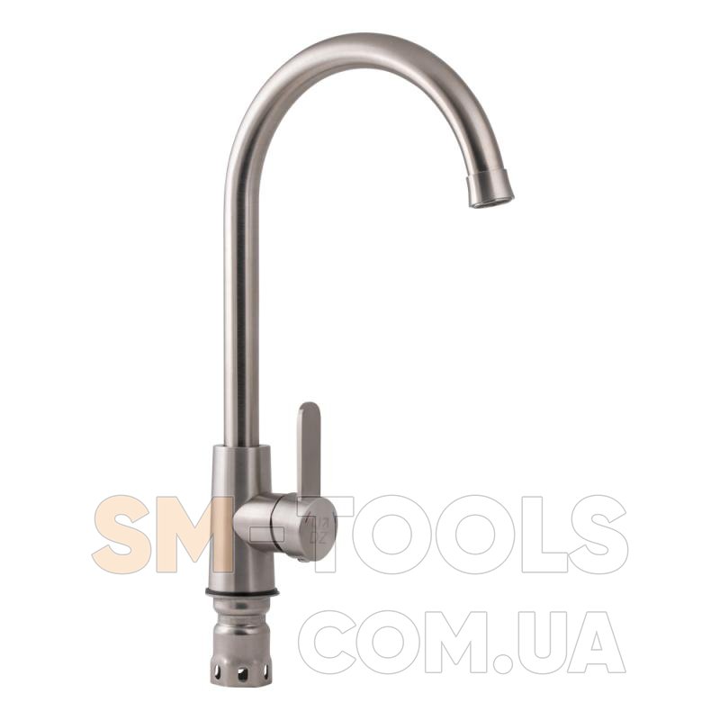 Змішувач для кухні Lidz (NKS)-11 31 014 08 виготовлений з нержавіючої сталі. Завдяки нікельованій брашуваній поверхні має оригінальний зовнішній вигляд. Виконаний в сучасному стриманому стилі. Монтаж даного змішувача не додасть труднощів, так як здійснюється за допомогою зручної гайки.