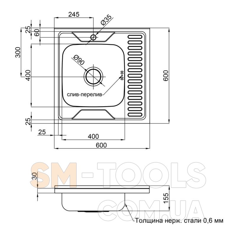 Характеристики Кухонна мийка Lidz 6060-L Polish 0.6 мм (LIDZ6060LPOL06):