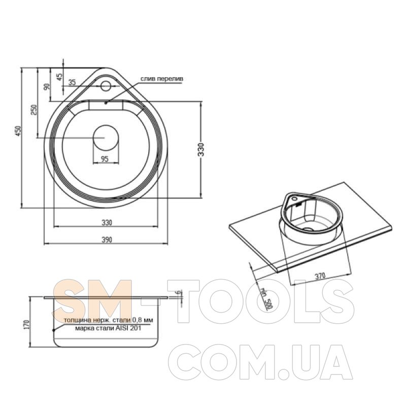 Характеристики Кухонна мийка Lidz 4539 Satin 0,8 мм (LIDZ4539SAT8):