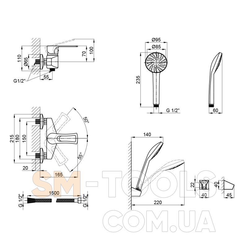 Комплектація Змішувач для душу Lidz (CRM) 44 80 010: