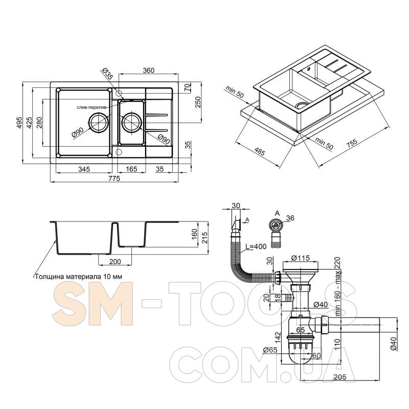 Характеристики Кухонная мойка Lidz 780x495/200 BLM-14 (LIDZBLM14780495200):