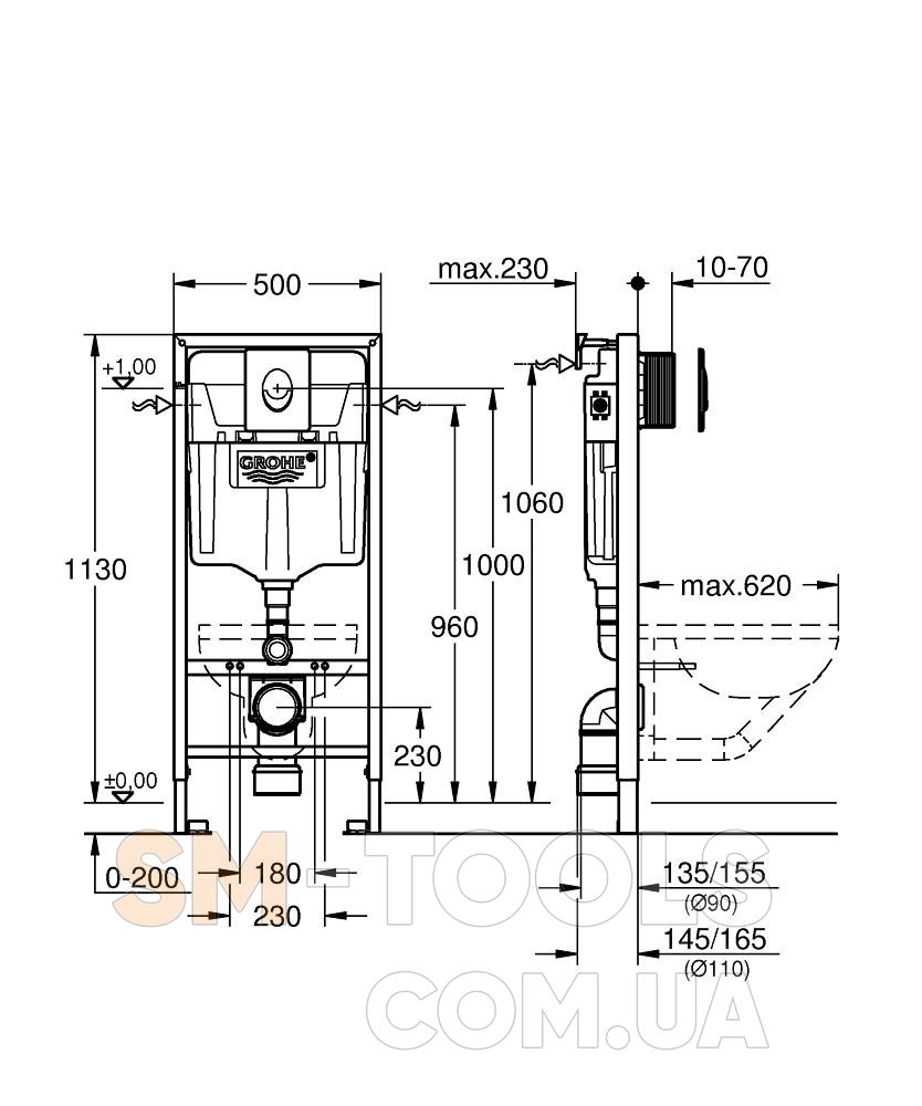 - - GROHE GlueFix® возможность крепления изделия к стене с помощью клея GROHE (40915000) - приобретается отдельно