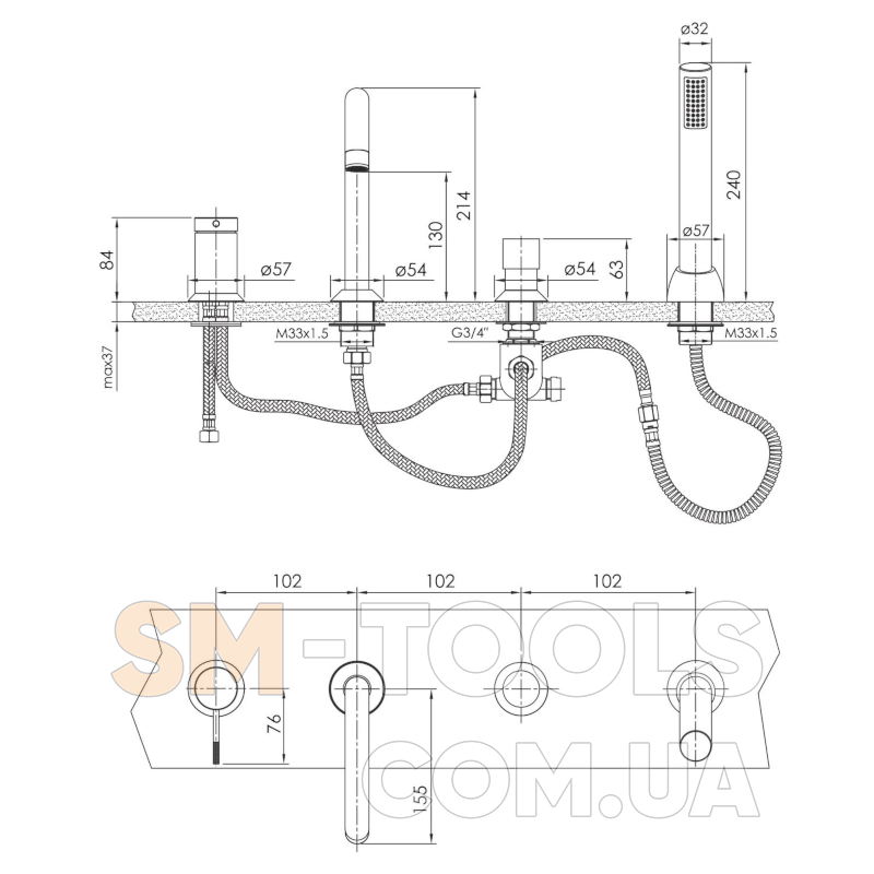 Характеристики Смеситель для ванны Imprese Brenta ZMK081906050: