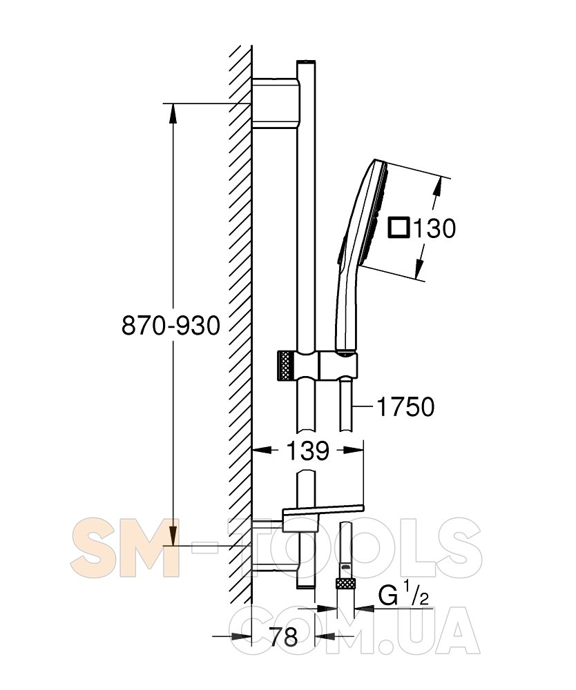 - Grohe TileFix возможна минимальная регулировка глубины кронштейнов крепления для невертикальных стен.
