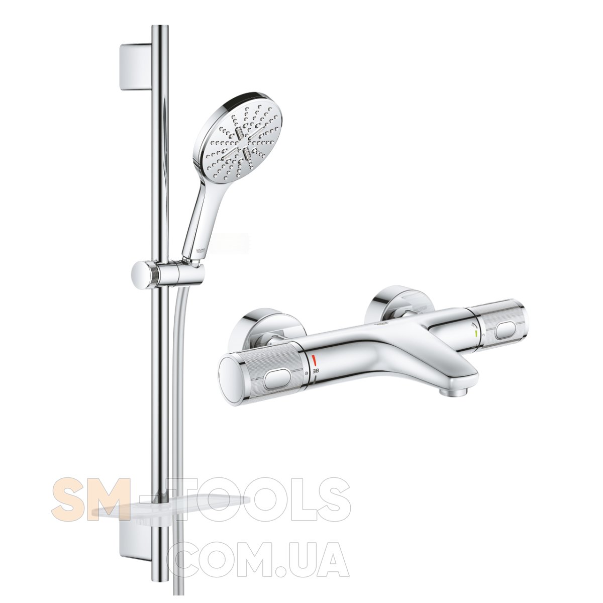 Смеситель для ванны Grohe Grohtherm 1000 Performance с душевым гарнитуром Grohe Rainshower Smartactive 130