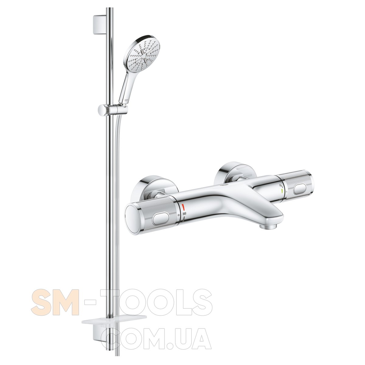 Смеситель для ванны Grohe Grohtherm 1000 Performance с душевым гарнитуром Grohe Rainshower Smartactive 130