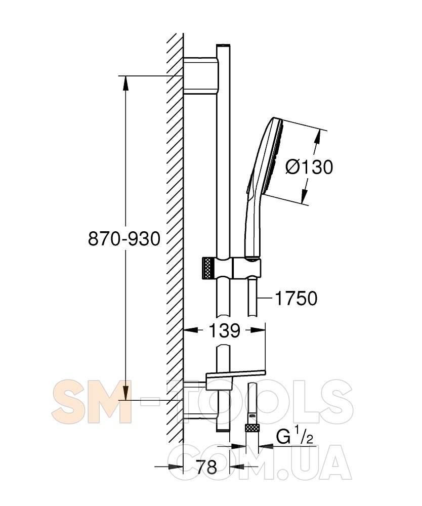 - Grohe TileFix возможна минимальная регулировка глубины кронштейнов крепления для невертикальных стен.