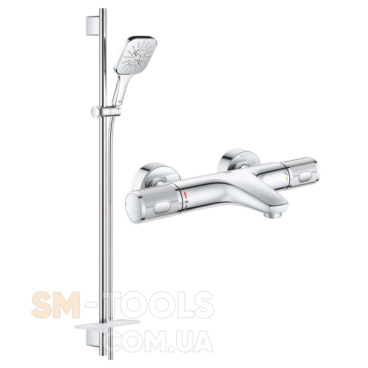 Смеситель для ванны Grohe Grohtherm 1000 Performance с душевым гарнитуром Grohe Rainshower SmartActive Cube 130