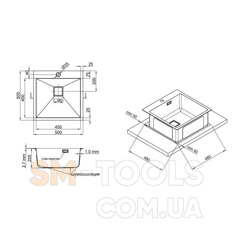 Описание Кухонная мойка Qtap DK5050BL Black 2.7/1.0 мм (QTDK5050BLPVD2710):