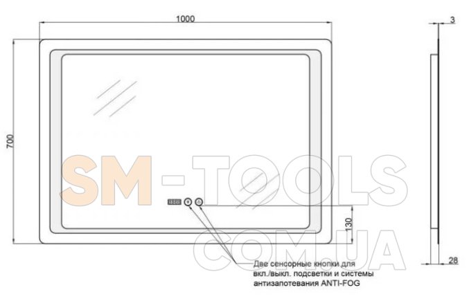 Характеристики Дзеркало Qtap Mideya з антизапотіванням (DC-F902-3) 1000х700 QT20789002W:
