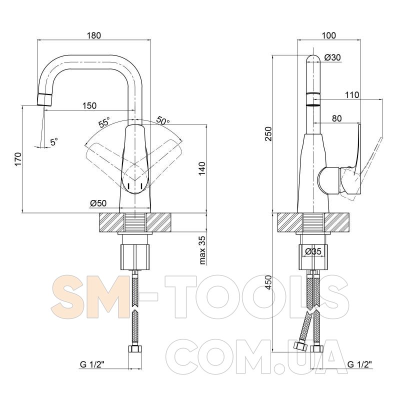 Диаметр подключения 1/2"