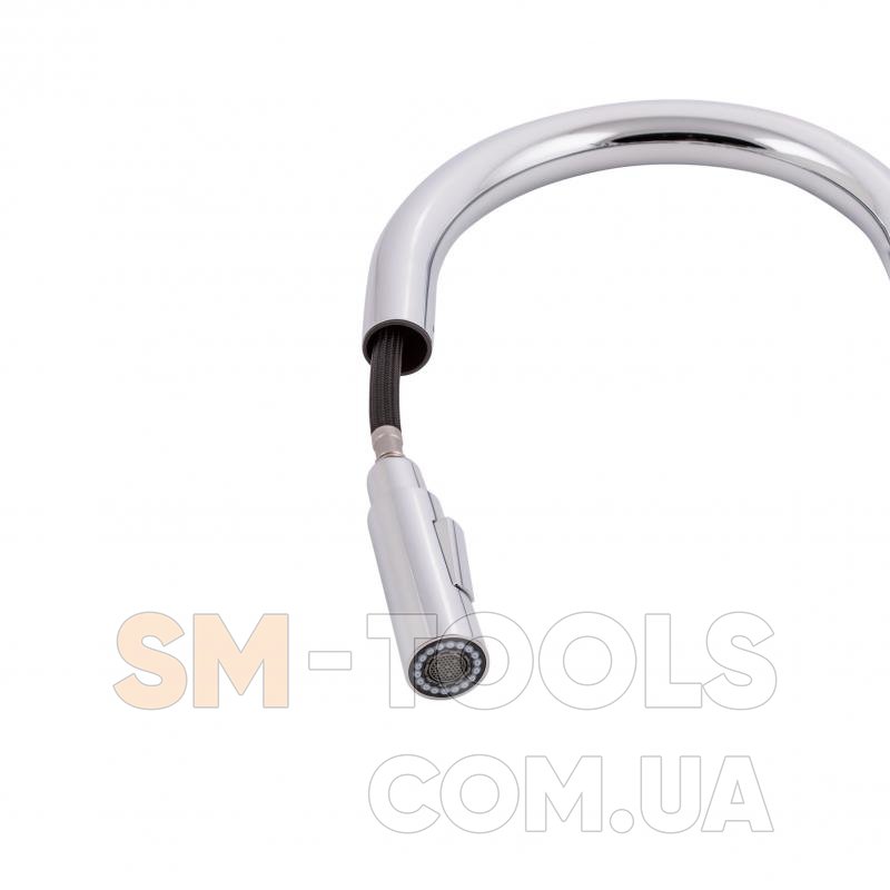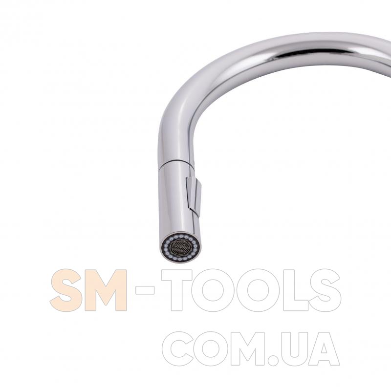 Смеситель для кухни с выдвижным изливом Qtap Anicka 9136103UC изготовлен из высококачественной латуни с глянцевым хромированным покрытием, что обеспечивает долговечную бесперебойную работу изделия. Благодаря выдвижной форме излива и двум режимам подачи струи, которые переключаются кнопкой на изливе, можно легко очистить труднодоступные места на посуде. Длина выдвижного шланга 1470 мм. Управление температурой и напором воды осуществляется с помощью удобного рычага