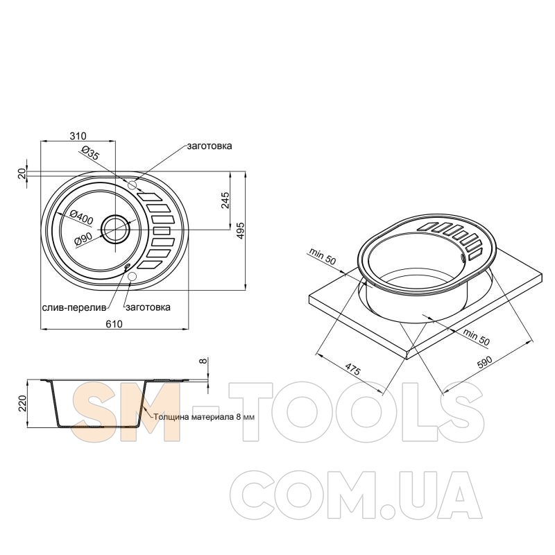 Отверстие под смеситель заготовка