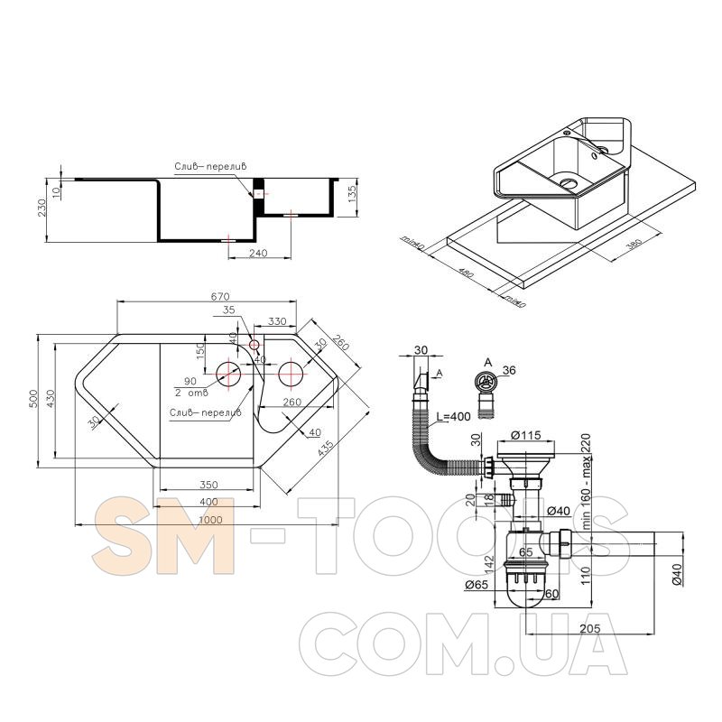 Характеристики Кухонна мийка Lidz 1000x500/225 COL-06 (LIDZCOL061000500225):