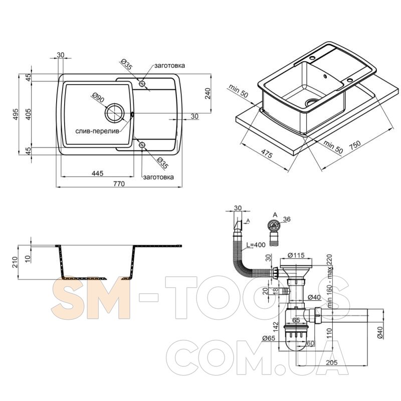 Характеристики Кухонна мийка Lidz 770x490/200 COL-06 (LIDZCOL06770490200):