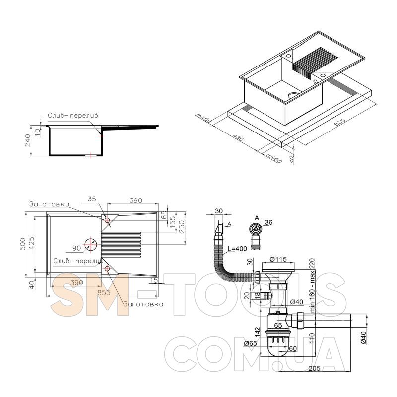 Характеристики Кухонна мийка Lidz 860х500/240 GRF-13 (LIDZGRF13860500240):
