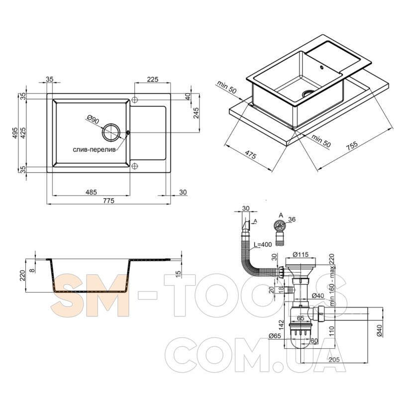 Характеристики Кухонна мийка Lidz 781x510/200 GRF-13 (LIDZGRF13781510200):