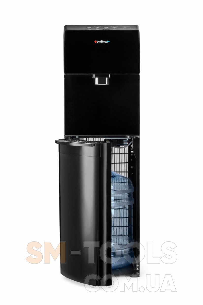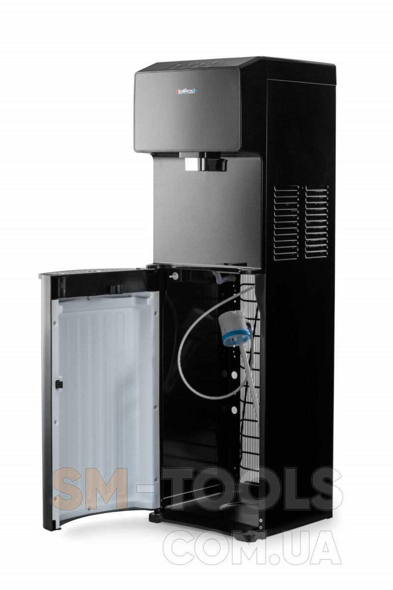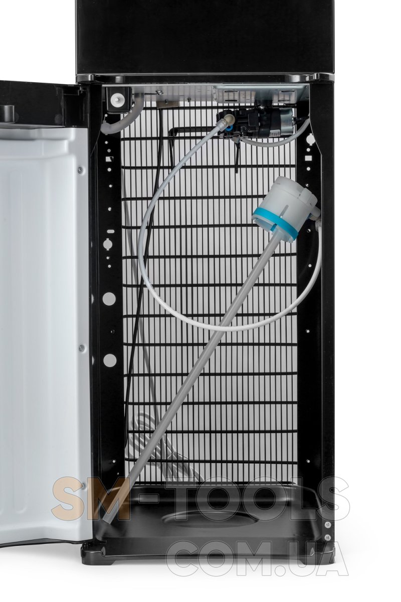 Т.к. в кулере используется нижняя загрузка бутыли (в шкафчик для бутыли), то для визуального контроля уровня воды, на панели управления имеется индикатор низкого уровня воды в бутыли, извещающий о необходимости произвести замену бутыли.