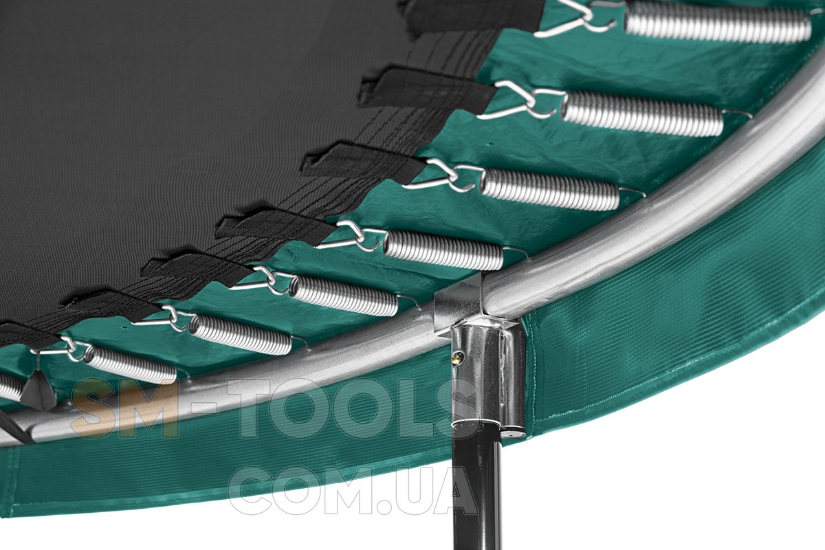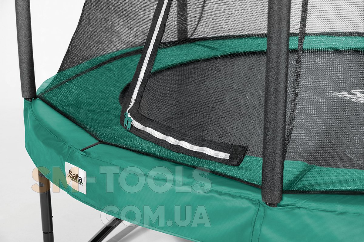 Стальной каркас крепкого батута Salta Comfort Edition выполнен из оцинкованной стали с черным глянцевым покрытием. Конструкция стального верхнего кольца удерживает защитную сетку в натянутом положении, что позволяет мягкой сетке с мелкими ячейками надежно защищать детей и взрослых от падения. Кроме того, батут оснащен специальным защитным поролоновым матом толщиной 20 мм и шириной 29 см, что покрывает оцинкованные конические пружины батута и защищает от попадания между ними ног и рук во время прыжков. Двухсторонняя молния обеспечивает легкий доступ внутрь батута и позволяет легко закрывать Salta Comfort Edition с внутренней стороны.