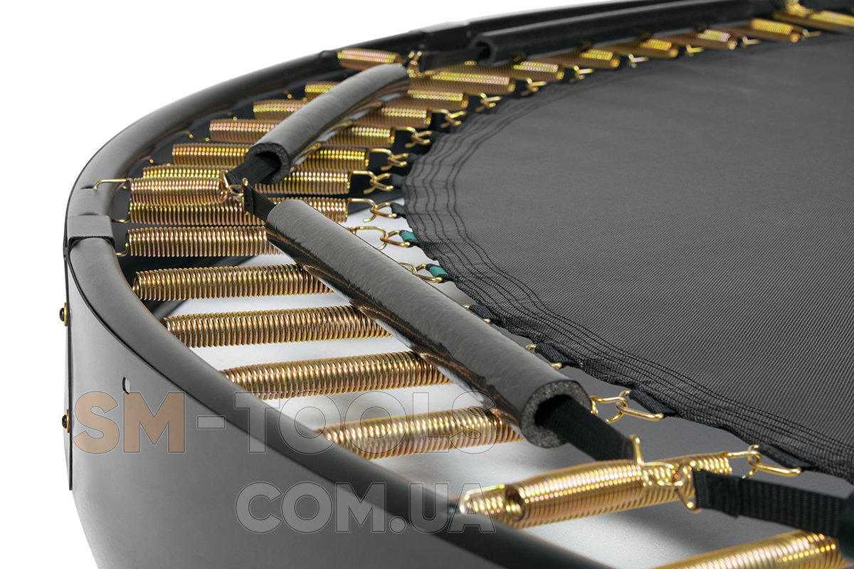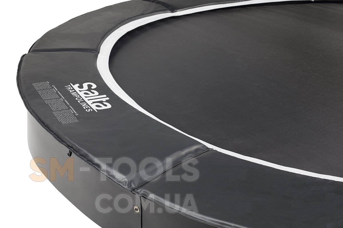 Благодаря специально разработанной и запатентованной системе Air Performance System батут имеет оптимальную вентиляцию и эластичность. Эта функция крайне необходима для батутов скрытого монтажа в грунт и обеспечивает идеальный комфорт во время прыжков. Именно это делает ощущение от прыжков на Salta Royal Baseground исключительными, также благодаря этой системе прыжки на батуте будут очень тихими. Наружный контур рамы этого батута оснащен прочными панелями, обеспечивающими стабильность и устойчивость всей конструкции батута. Прочная металлическая рама имеет двойное оцинкованное покрытие и дополнительно покрыта слоем порошковой краски, которая предотвращает окисление и защищает от поражения ржавчиной. Надежный защитный мат выполнен из высококачественного, прочного материала и немного шире по внешнему контуру, чем стандартный защитный мат.