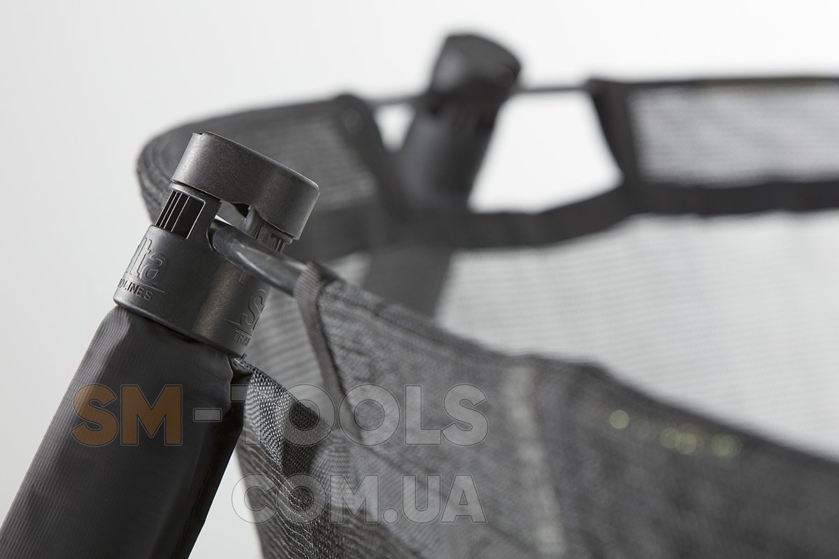 - Дуже безпечний за рахунок комплектної захисної сітки і м'якого батутного килимка