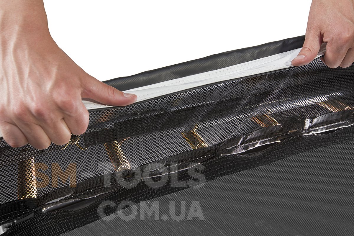 Благодаря специально разработанной и запатентованной системе Air Performance System батут имеет оптимальную вентиляцию и эластичность. Эта функция крайне необходима для батутов скрытого монтажа в грунт и обеспечивает идеальный комфорт во время прыжков. Именно это делает ощущение от прыжков на Salta Royal Baseground исключительными, также благодаря этой системе прыжки на батуте будут очень тихими. Наружный контур рамы этого батута оснащен прочными панелями, обеспечивающими стабильность и устойчивость всей конструкции батута. Прочная металлическая рама имеет двойное оцинкованное покрытие и дополнительно покрыта слоем порошковой краски, которая предотвращает окисление и защищает от поражения ржавчиной. Надежный защитный мат выполнен из высококачественного, прочного материала и немного шире по внешнему контуру, чем стандартный защитный мат.