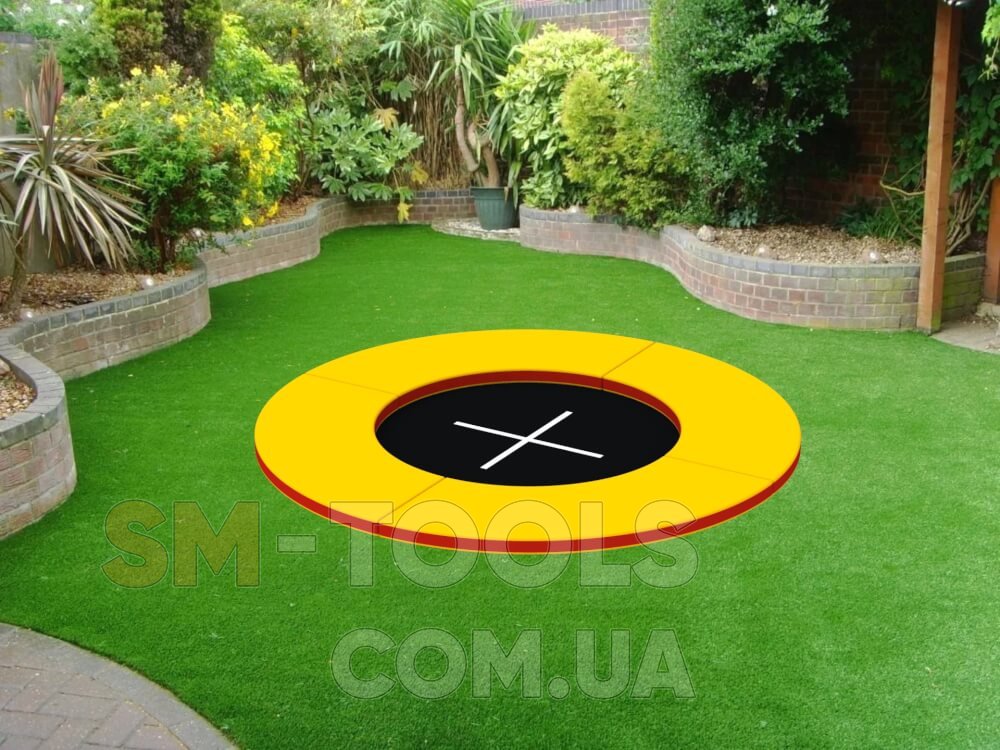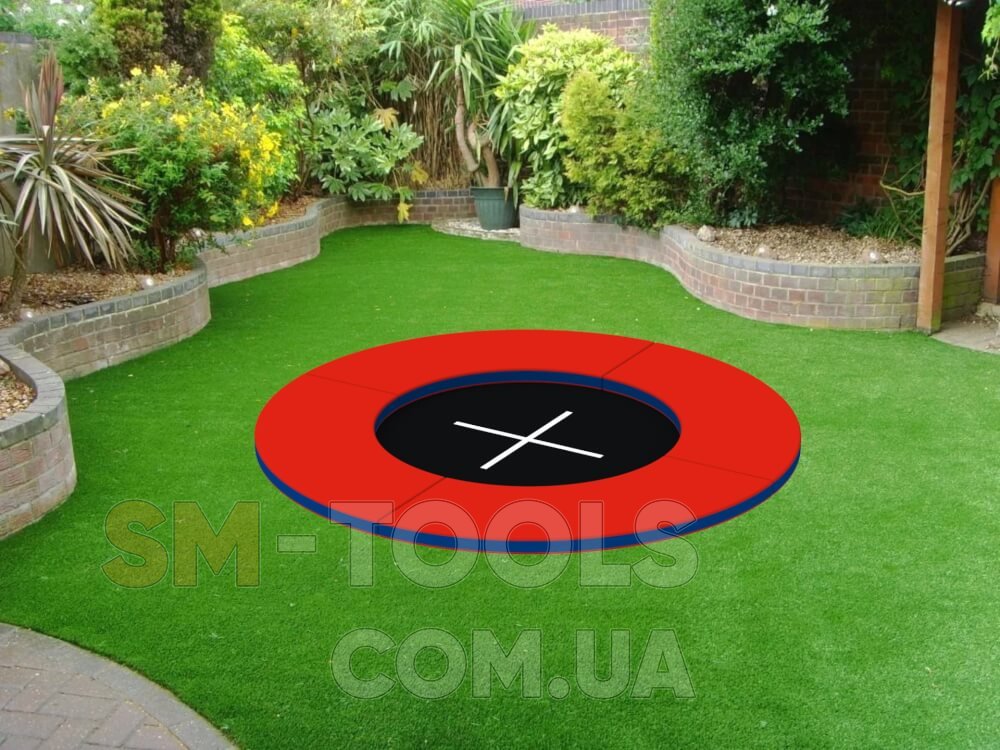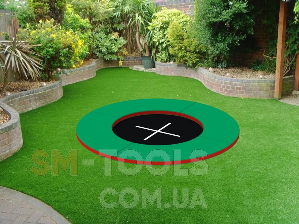 У батутів немає зовнішньої сітки, конструкція стійка і все, що вам потрібно зробити, це розмістити батут у викопаній в ґрунті ямі і вирівняти його.