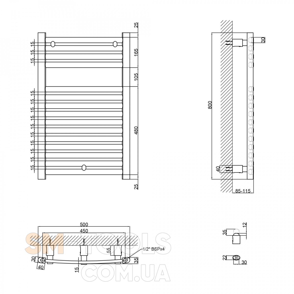 Комплектація Сушарка рушників водяна Qtap Dias (BLA) P15 800x500 HY: