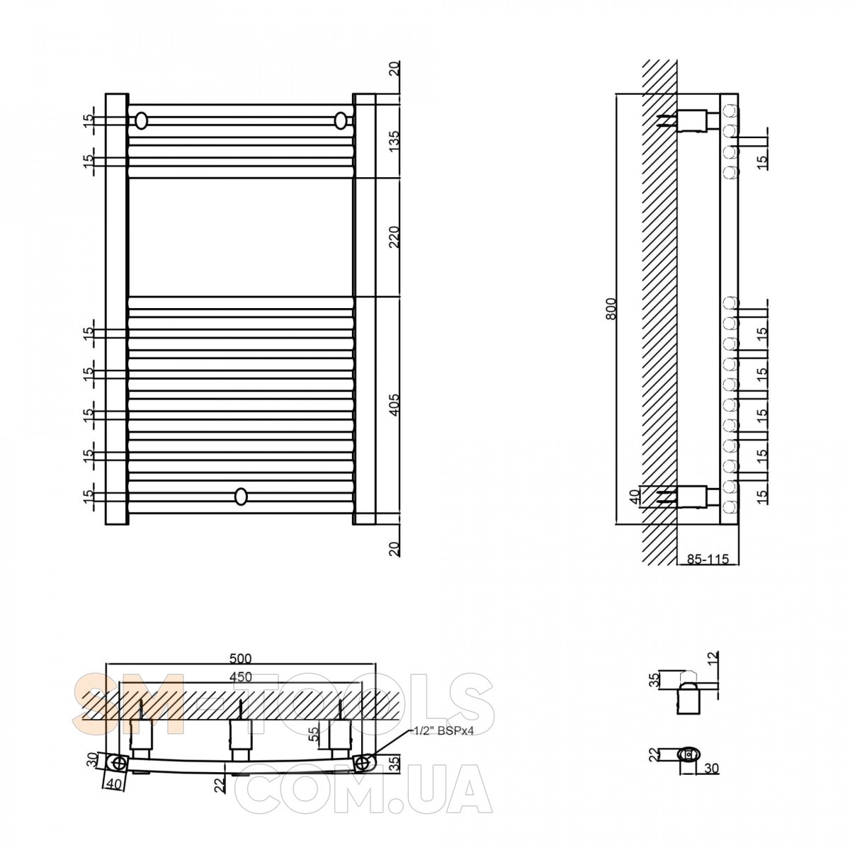 Комплектація Сушарка рушників водяна Qtap Evia (WHI) P15 800x500 HY: