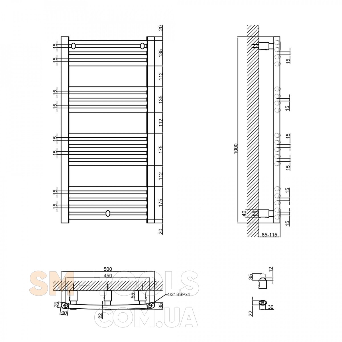 Комплектація Сушарка рушників водяна Qtap Evia (WHI) P18 1000x500 HY: