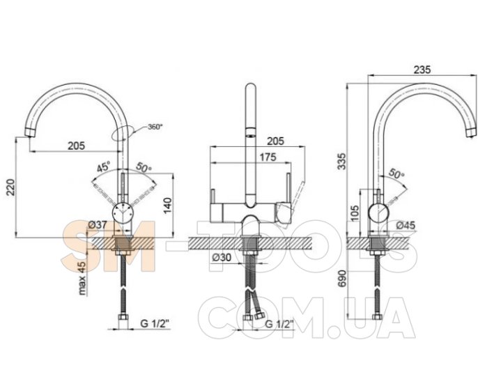 Характеристики Змішувач для кухні з фільтром Qtap Kuchyne 92102FC: