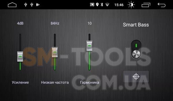 Тонкая настройка баса. По сути, басовый параметрический эквалайзер. Выберите центральную частоту и коэффициент её усиления. Добавьте баса там, где это необходимо. Функция «Гармоника» автоматически восстанавливает гармоники низких частот, потерянные при сжатии аудиофайлов. Вы поймете это, сравнив звучание DTA магнитолы с обычным автомобильным ресивером, на заводских («нулевых») аудио настройках.
