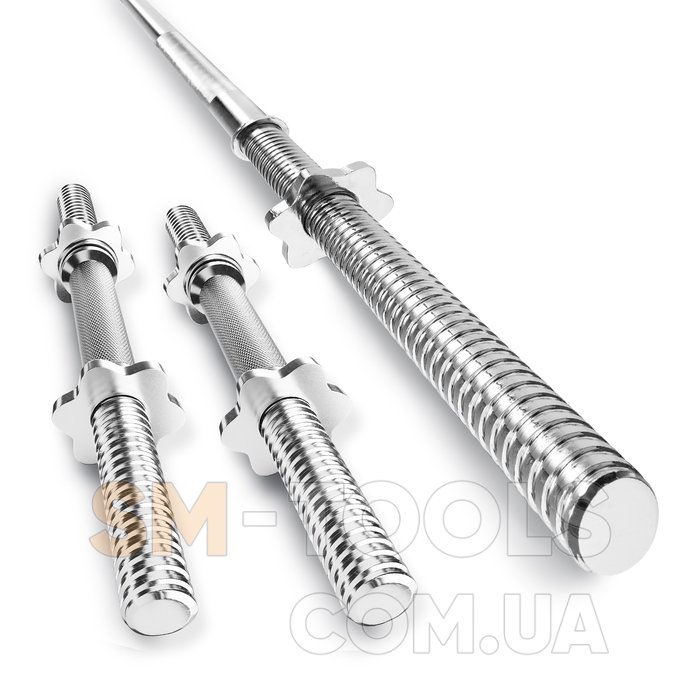 Різьба на кінцях грифа робить установку дисків простою і швидкою (фіксуються контргайками).