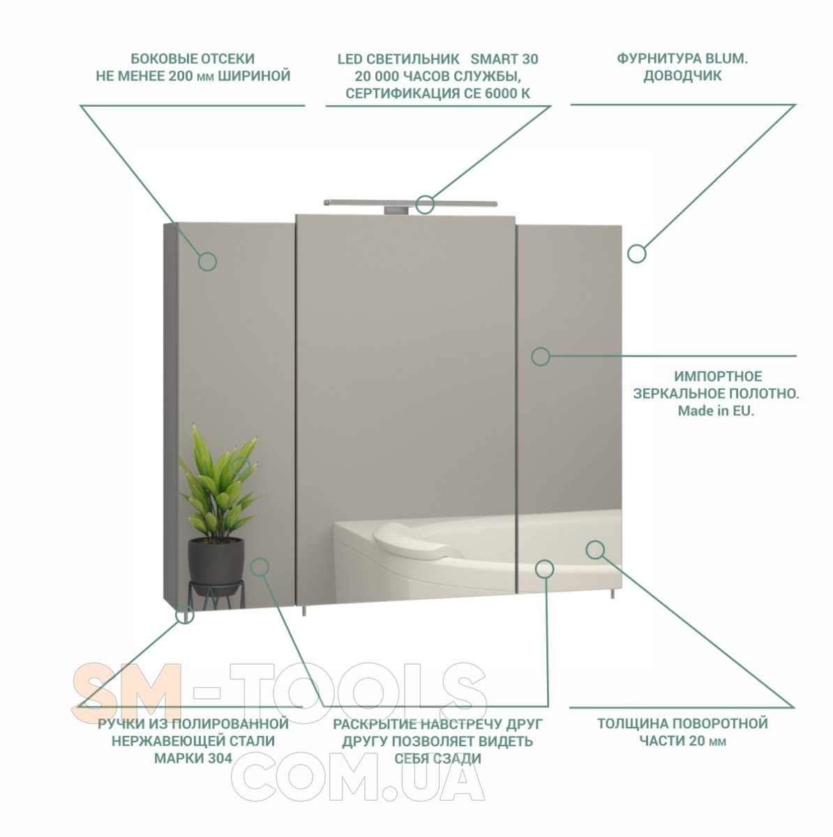 Мы используем новые материалы и идеи. Мы усовершенствуем конструкцию. Наши зеркальные галереи тоньше, легче и красивее, чем у других производителей. Обращаем Ваше внимание на тот факт, что мы единственные, кто использует 12 мм толщину ДСП для дверцы и корпуса. Конкуренты используют 16 мм, и по этой причине они выглядят грубыми. В качестве ручек мы используем нержавеющую полированную сталь (марки 304). Конкуренты применяют оцинкованный металл, который нельзя использовать в ванной.
