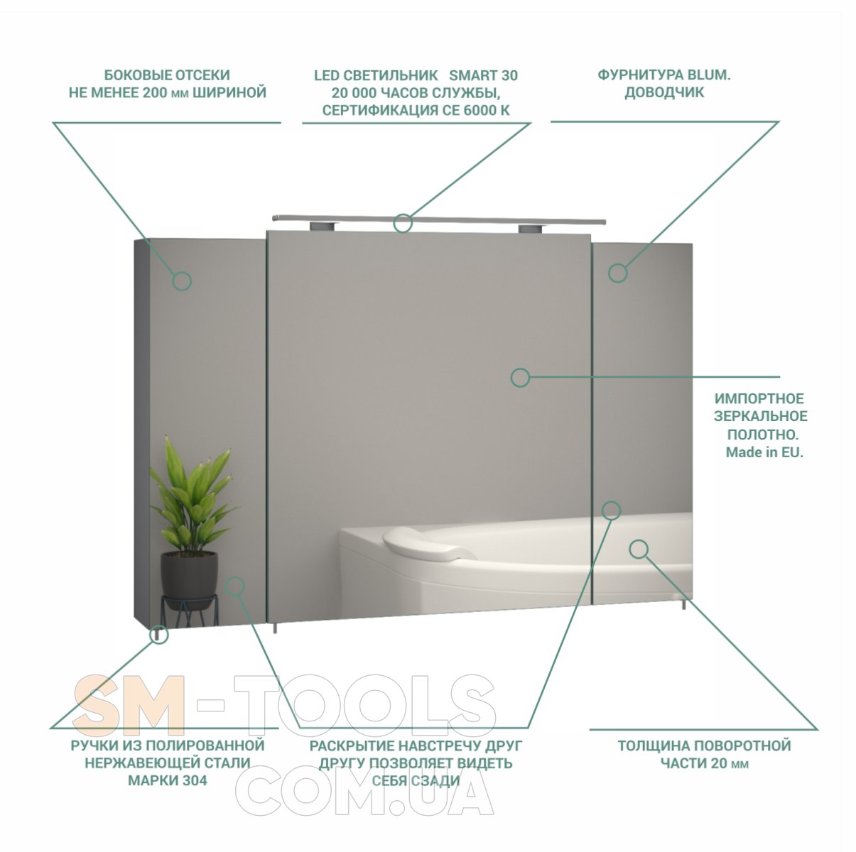Зеркальный шкаф SANWERK Everest 100 серый 3F, без подсветки