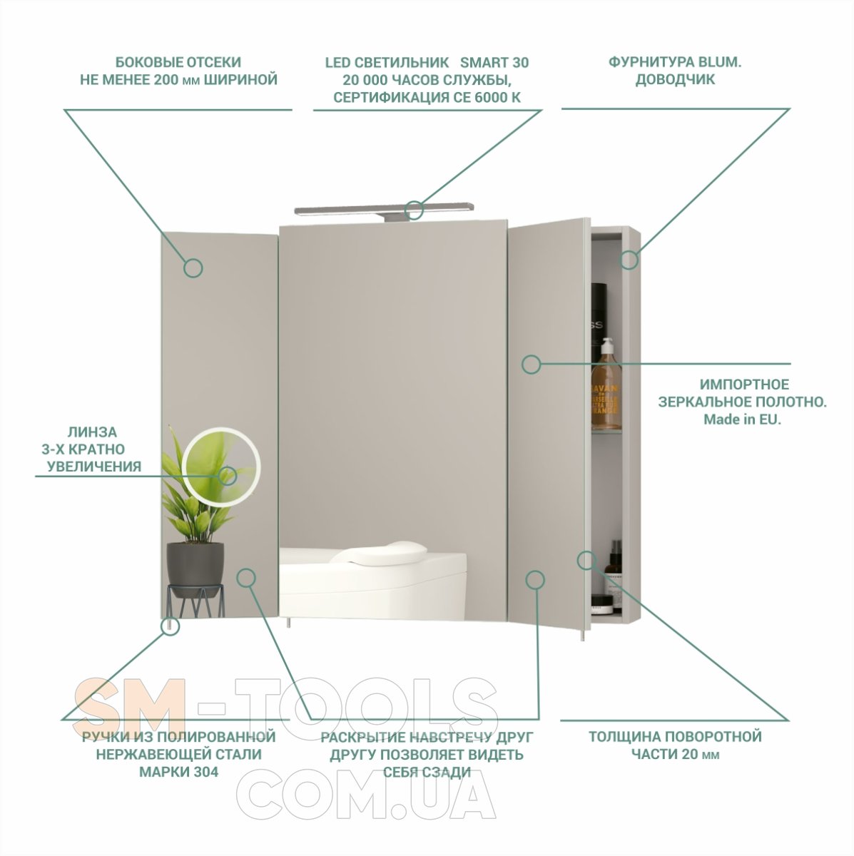 ПЕРВЫЙ Зеркальный шкаф в Украине с линзой трехкратного увеличения!