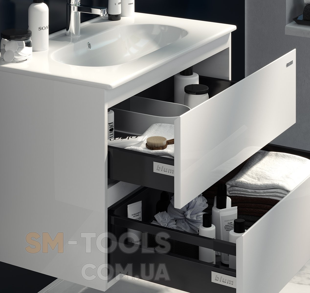 Фурнитура: черный TANDEMBOX ANTARO BLUM (Австрия) в тумбах и петли черный Оникс CLIP top BLUMOTION (Австрия) в пеналах. Крепление к стене – CAMAR (Италия).