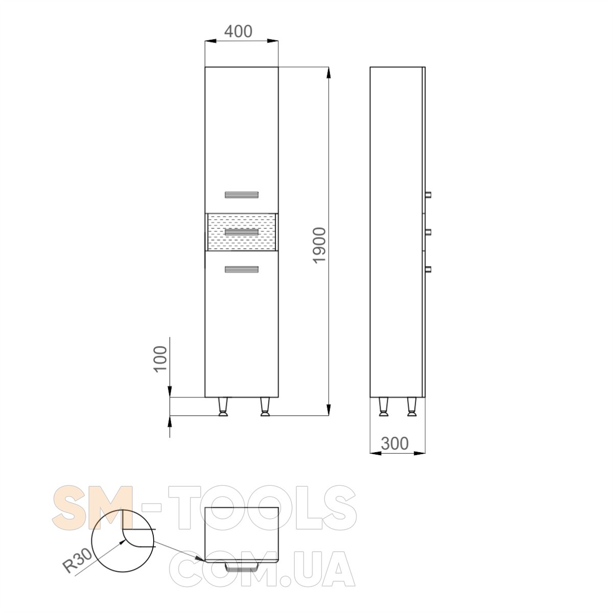 Глубина 300 мм