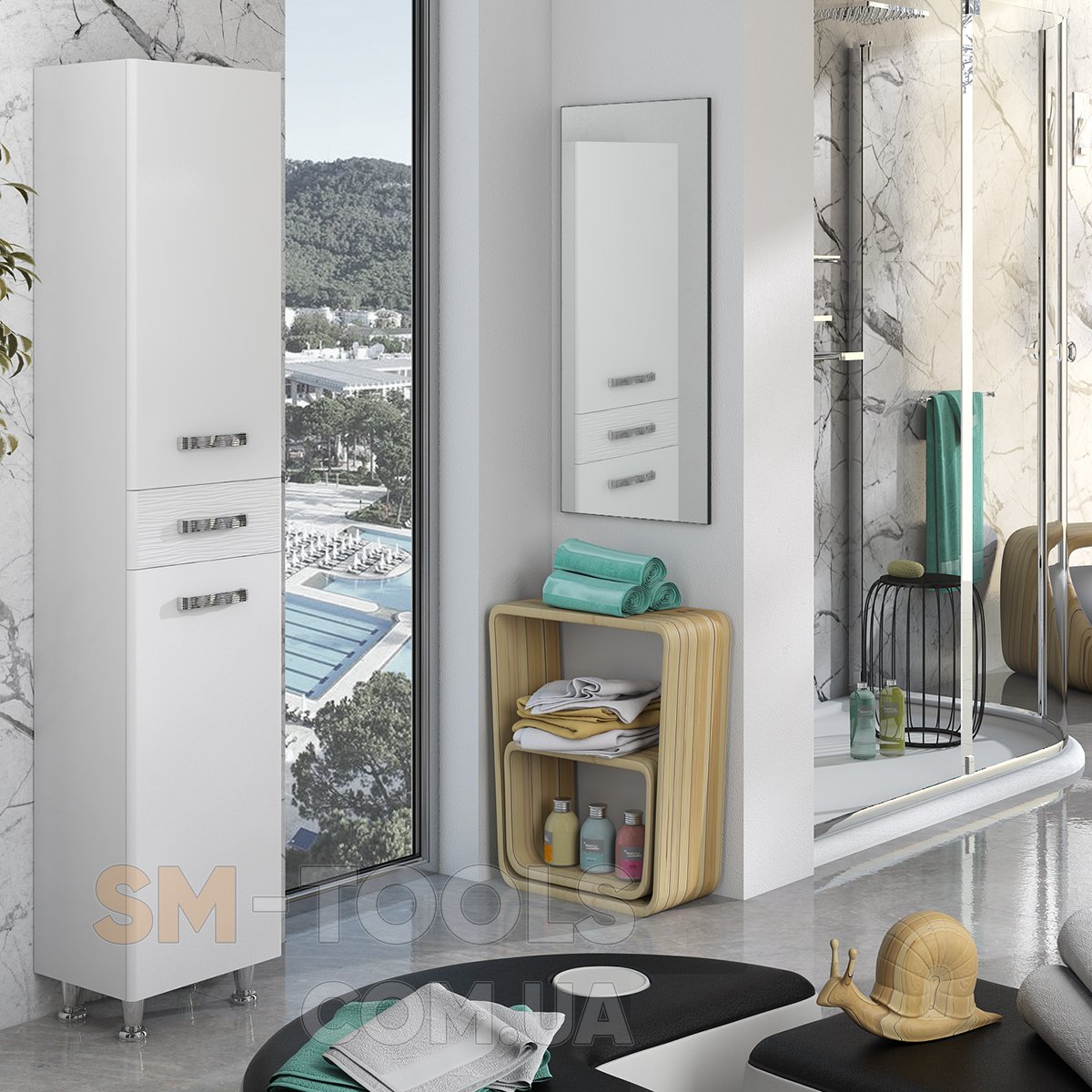 Напольный пенал изготовлен из высококачественного МДФ и окрашен краской итальянского производства Sayerlack. Данный элемент мебели очень вместителен. Если есть место для его установки, рекомендуем его приобрести. Если нет достаточного места, тогда мы предлагаем приобрести полупенал и разместить его над стиральной машиной или в другом месте.