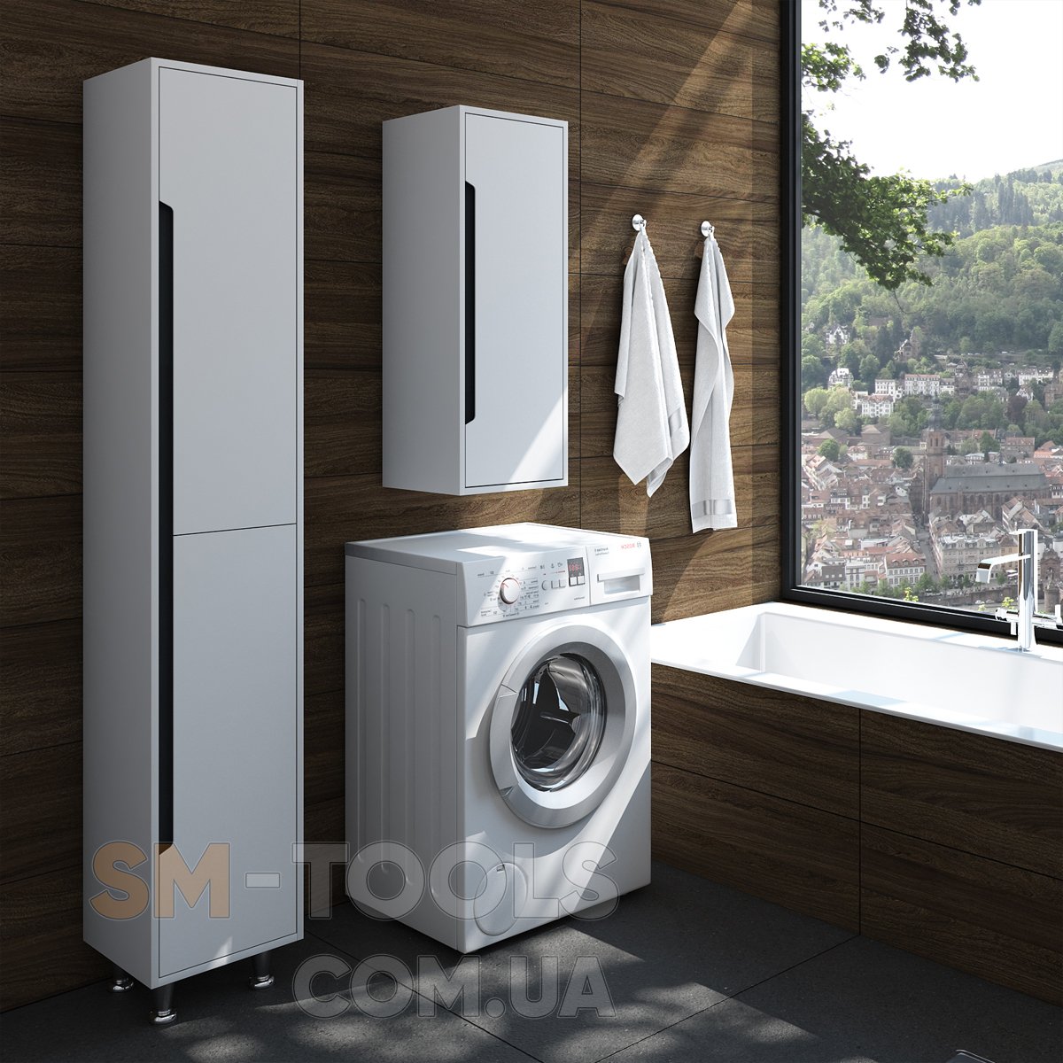 Напольный пенал изготовлен из высококачественного МДФ и окрашен краской итальянского производства Sayerlack. Данный элемент мебели очень вместителен. Если есть место для его установки, рекомендуем его приобрести. Если нет достаточного места, тогда мы предлагаем приобрести полупенал и разместить его над стиральной машиной или в другом месте.