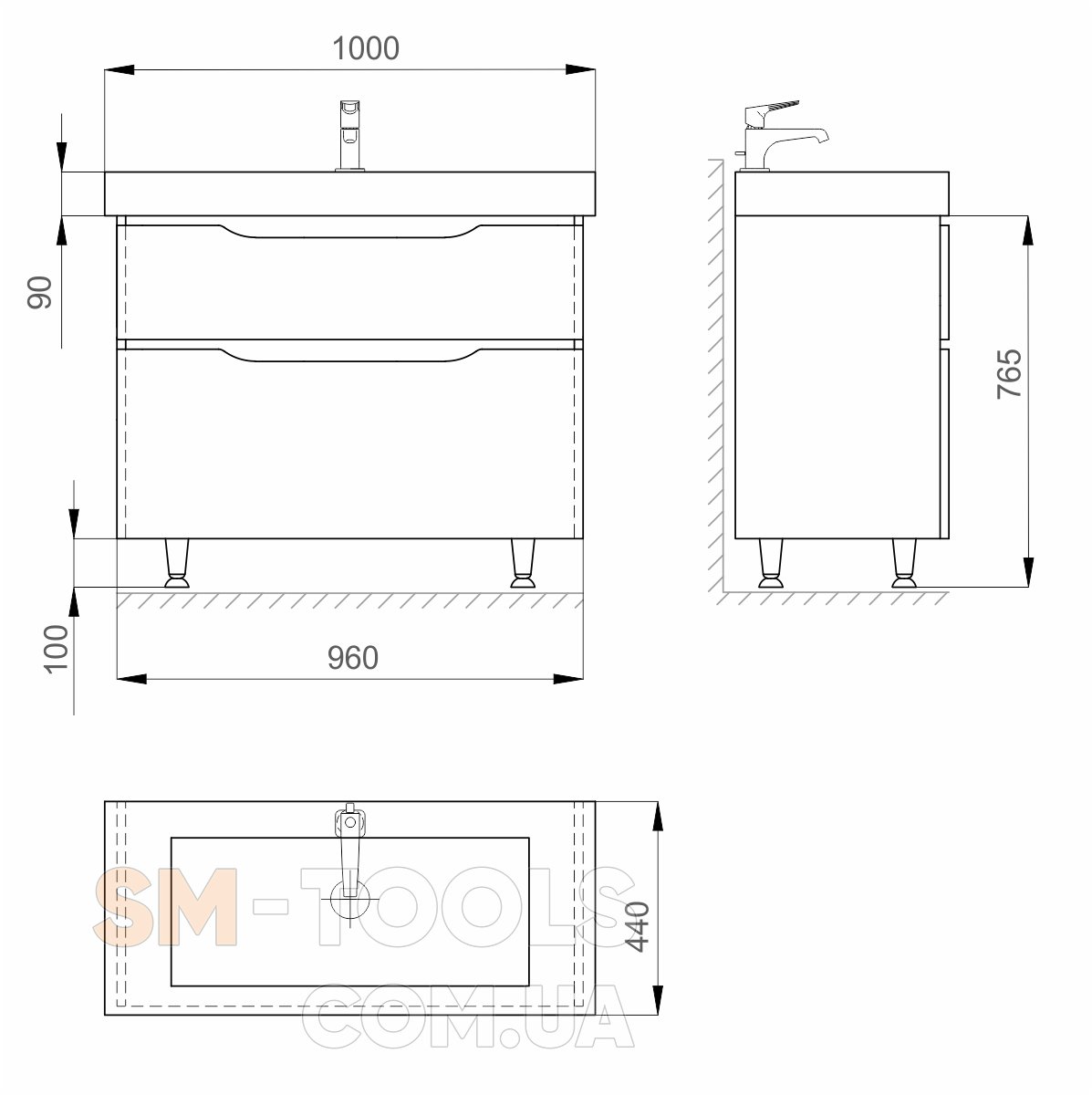 Характеристики Тумба с умывальником SANWERK Liga 100 Мессина Принц 2F: