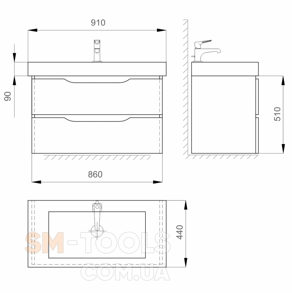 Характеристики Тумба с умывальником SANWERK Liga Air 90 Мессина Принц 2F: