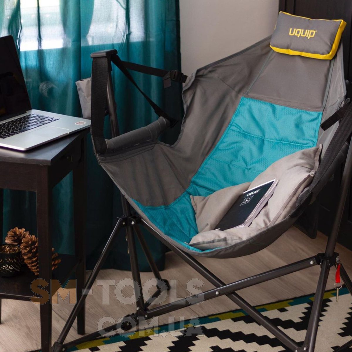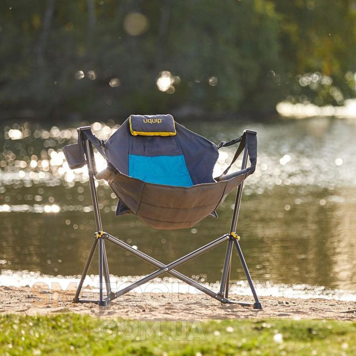 Чи комусь прийде в голову думка взяти з собою на природу крісло-гойдалку. Якщо це звичайно не розкладне крісло-гойдалка Uquip Rocky, яке компактно укладається в чохол, і не займає багато місця в автомобілі, а при бажанні може переноситися і в чохлі на плечі. Крісло складається з двох частин, і його збірка займає лічені секунди. Спинка регулюється в широкому діапазоні і дозволяє перебувати як у вертикальному положенні, так і практично лежачи. Два підстаканники дозволять розмістити достатню кількість улюблених напоїв, а подушка під голову додасть комфорту Вашому відпочинку. Конструкція каркаса дозволяє бути впевненим, що крісло не перекинеться, навіть якщо його розхитувати. Розкладне крісло-качалка Uquip Rocky - це новий рівень комфорту для відпочинку на природі.