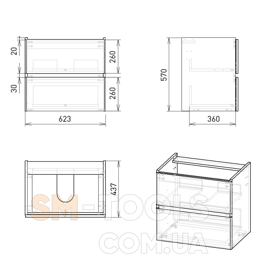 Размеры тумбы (Ш*В*Г): 623*570*437 мм