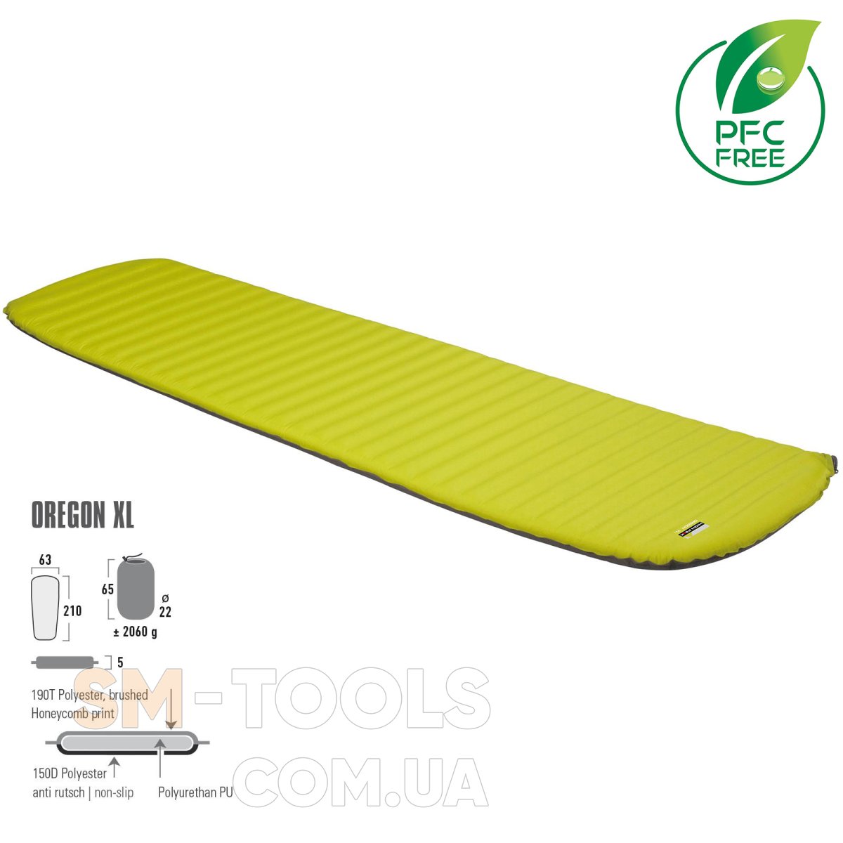 Коврик самонадувающийся High Peak Oregon XL 5 cm Citronelle (41126)