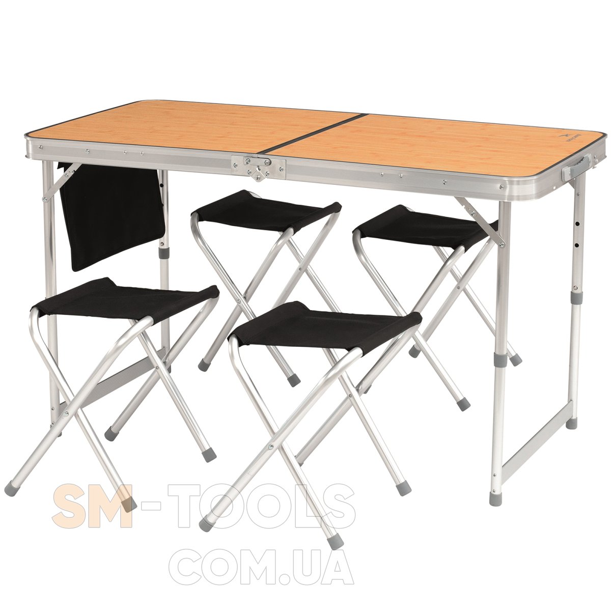 Складной стол для пикника Easy Camp Belfort поставляется с четырьмя складными стульями для создания комфорта во время отдыха на природе. Легкий и прочный, стол регулируется по высоте в трех положениях. Стулья с верхом из черной ткани, когда не используются, то просто складываются внутри стола для удобного хранения. Ламинированная столешница легко моется, но не следует оставлять стол под сильным дождем или на жарком солнце.