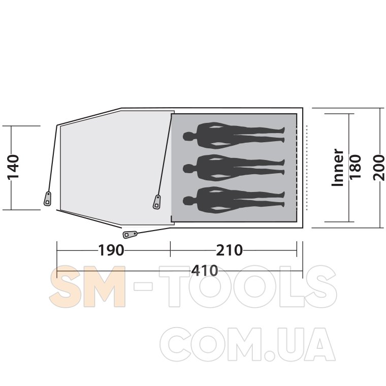 - Затемненные стены и потолок внутренней палатки уменьшают проникновение света, что способствует хорошему сну.