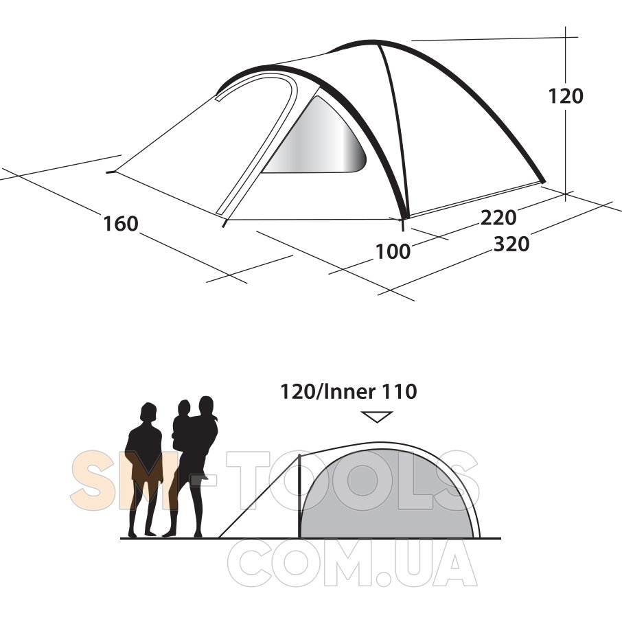Внешний тент (Д х Ш х В): 320 х 160 х 120 см