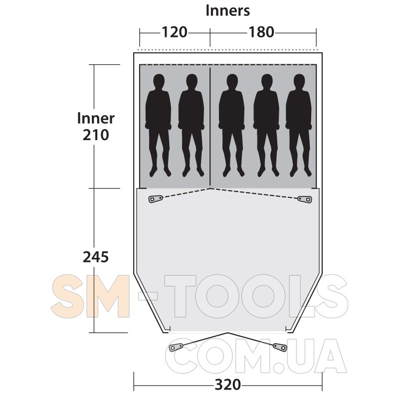 Внутренняя палатка (Д х Ш х В): 210 х 300 х 190 см